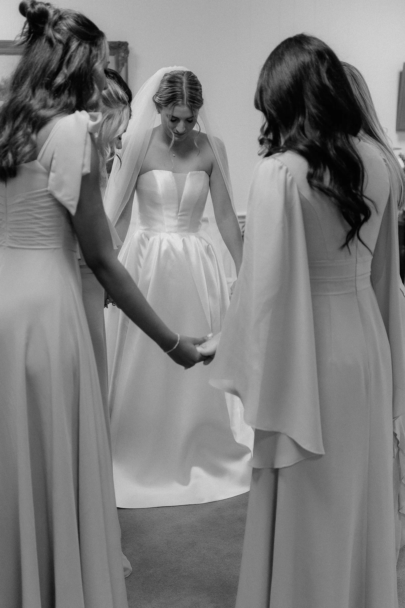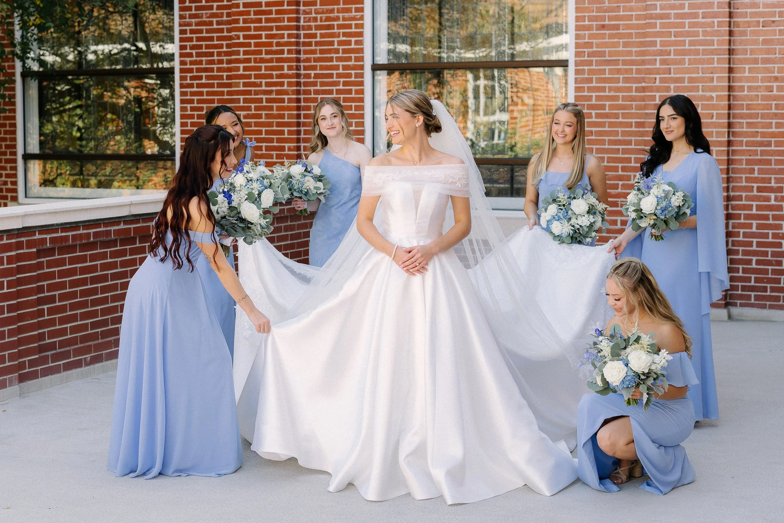 Lindsey spent the morning getting ready at the church, surrounded by her bridesmaids, with every detail thoughtfully chosen. From a handkerchief passed down from her great-great grandmother to her grandmother’s pearl bracelet, every piece she wore carried meaning.