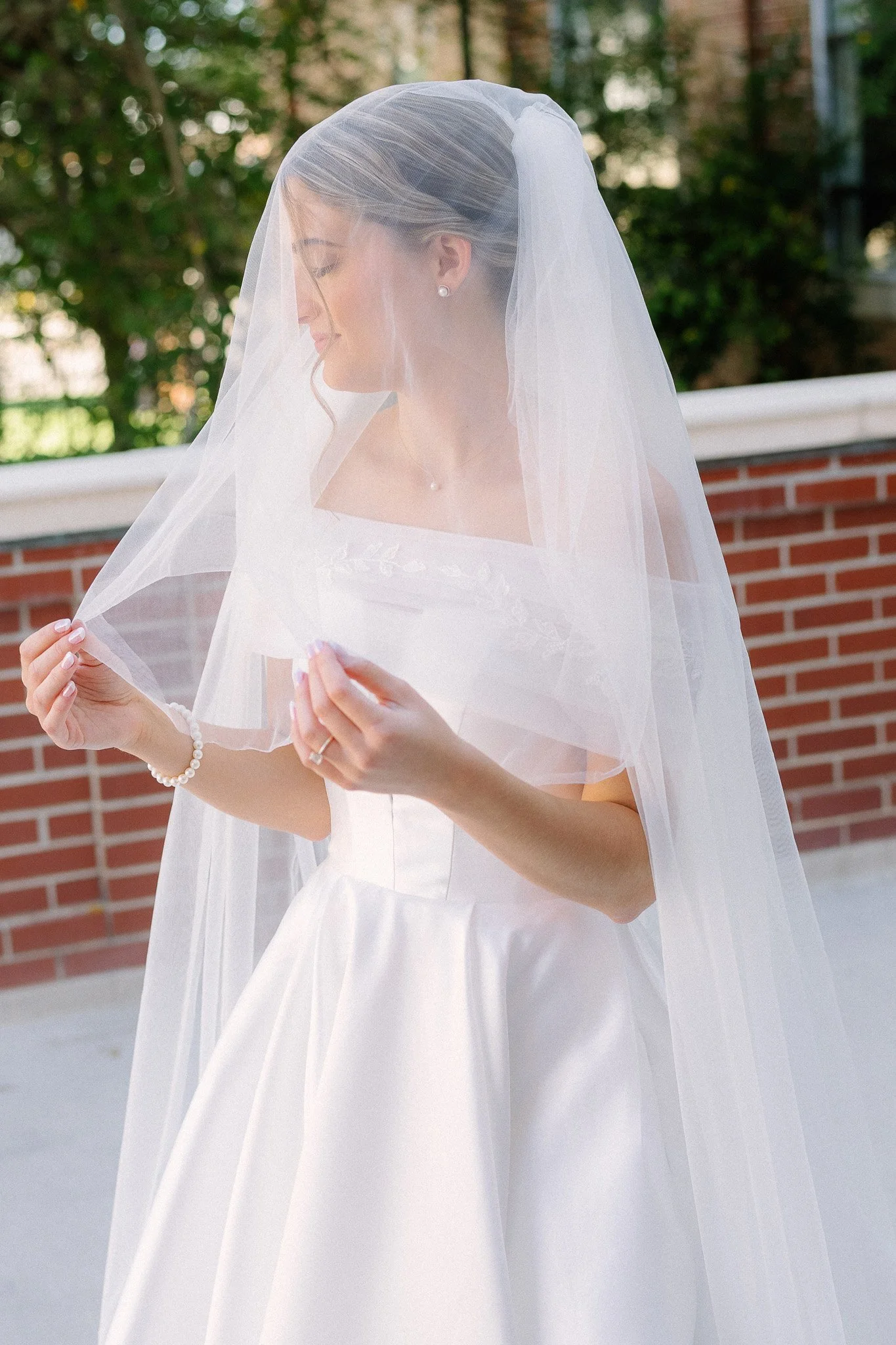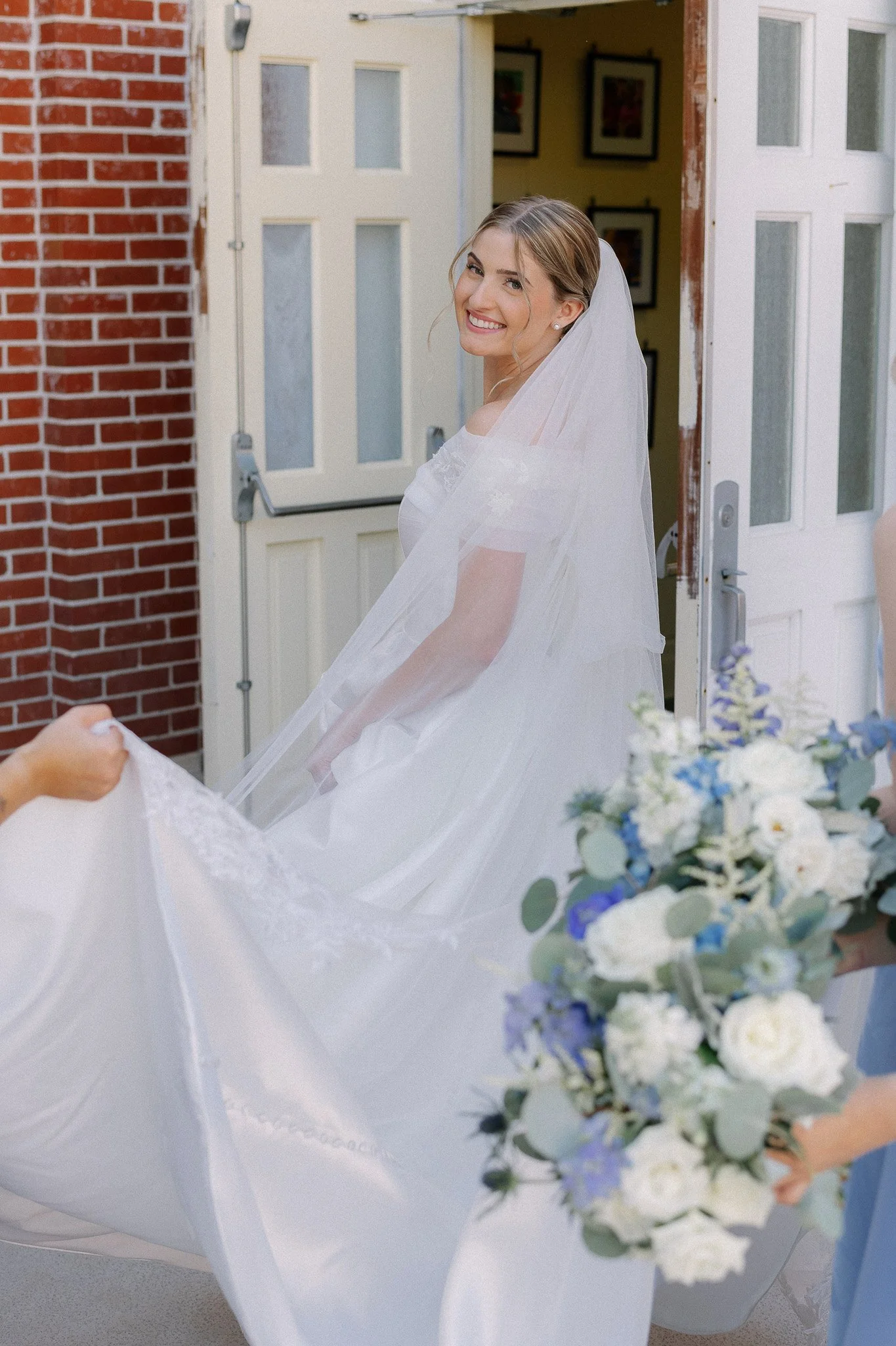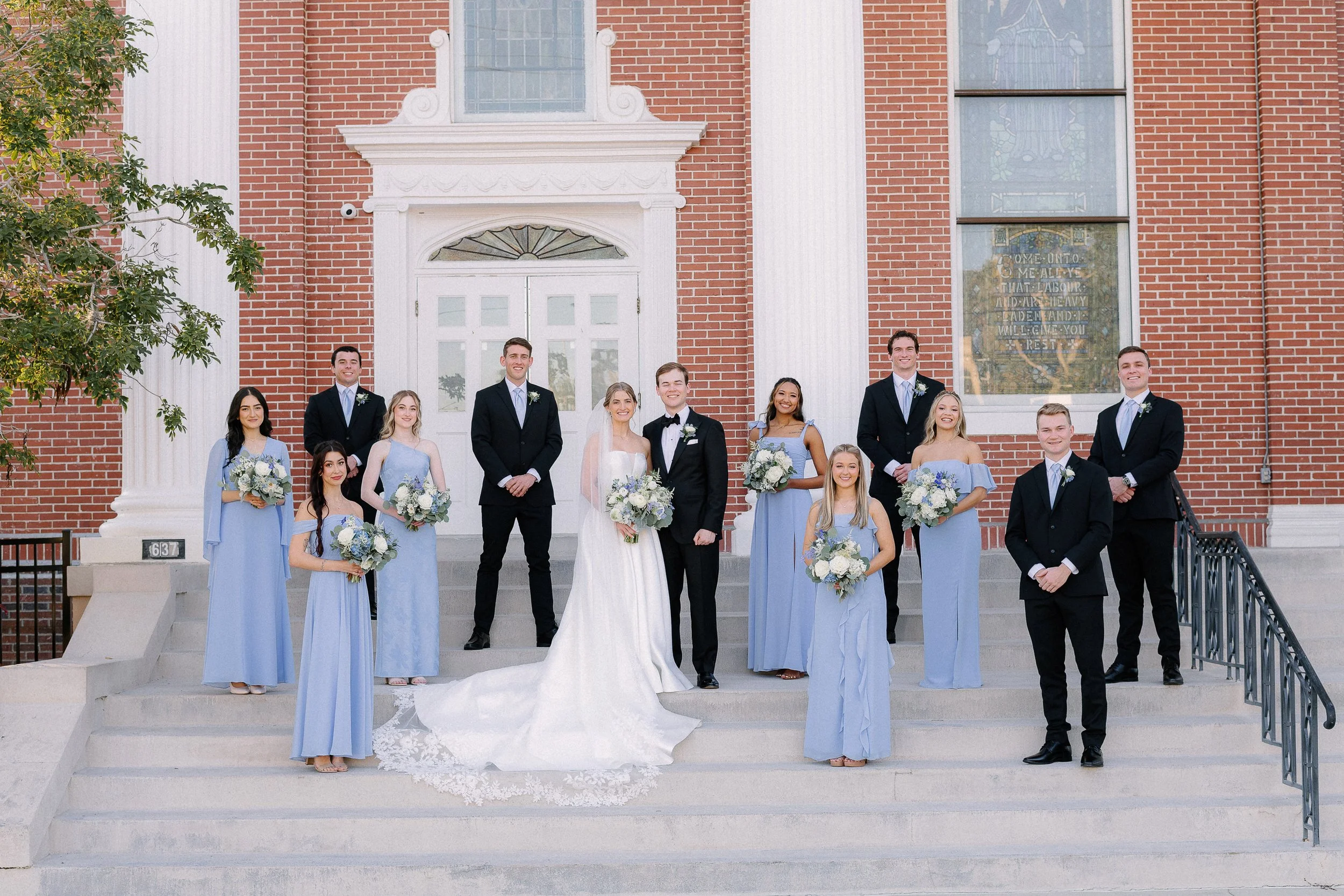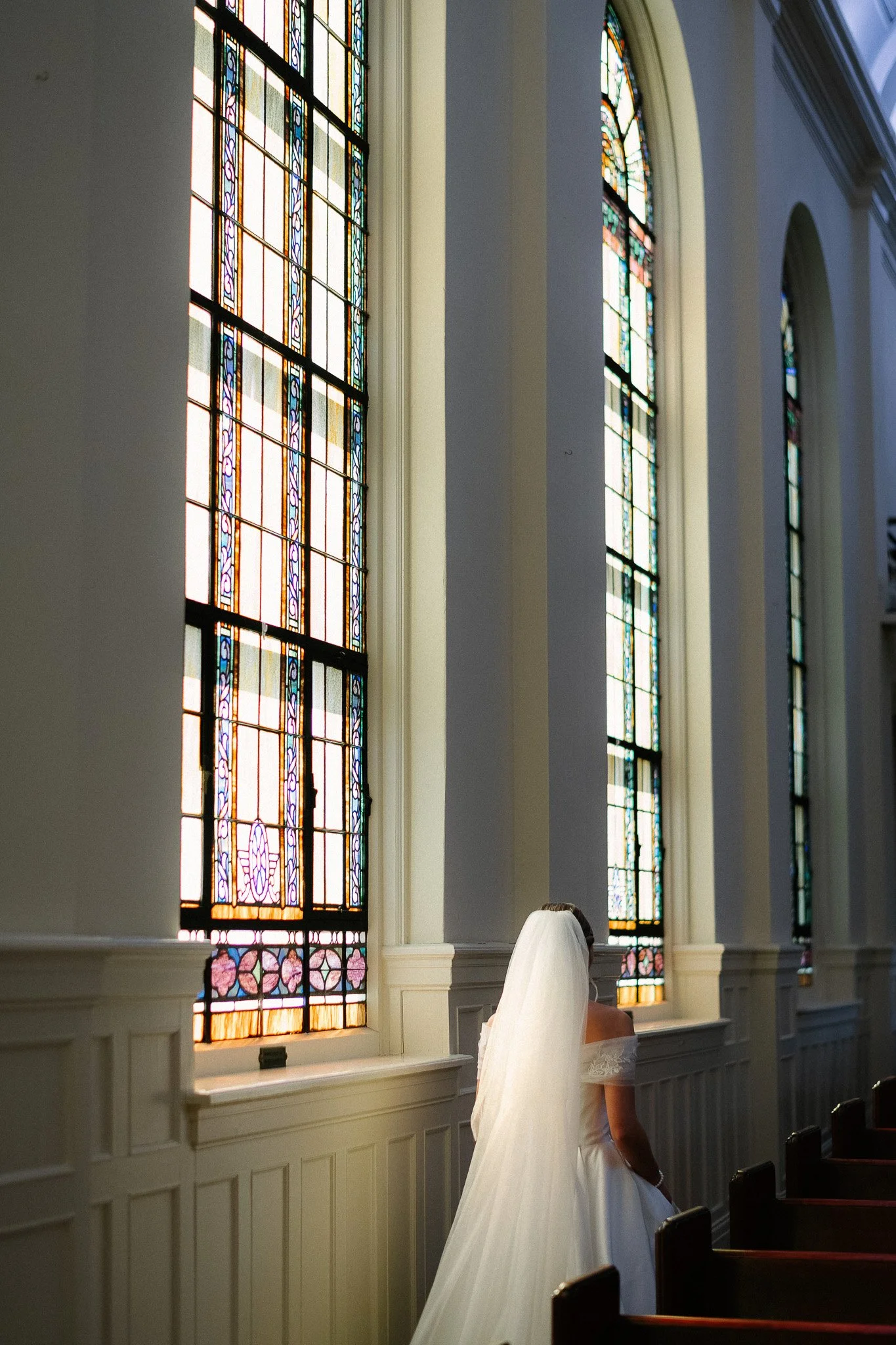 They were especially excited to incorporate the church’s classic staircase, a timeless backdrop that added so much elegance to their images. The light poured in beautifully, creating a soft, natural glow that made each moment feel even more refined. Olivia from The Southern Swann was there every step of the way, thoughtfully adjusting each detail and ensuring Lindsey looked absolutely perfect, allowing everything to come together seamlessly.